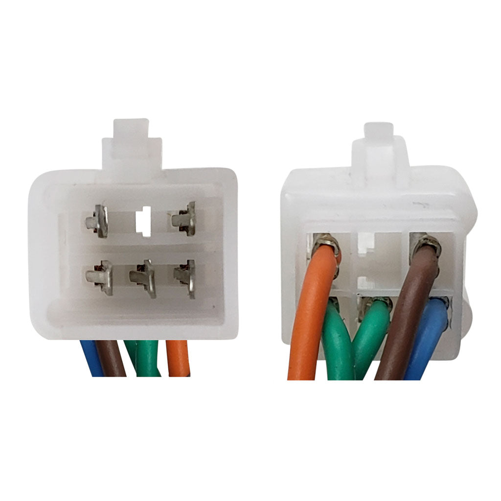 - 6 wire male plug with 5 wires (see picture)