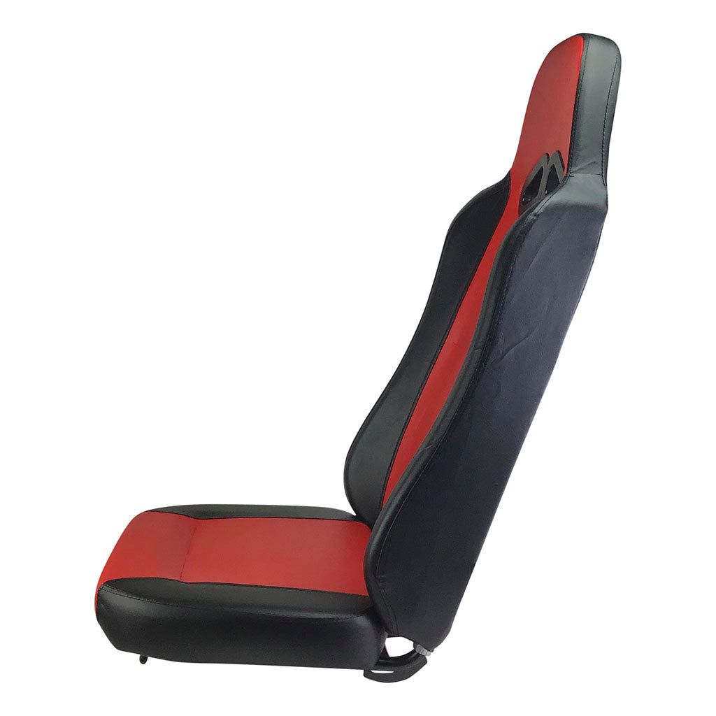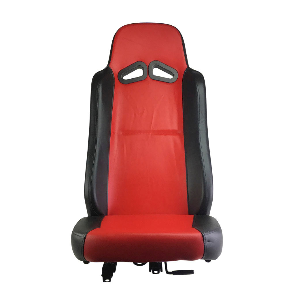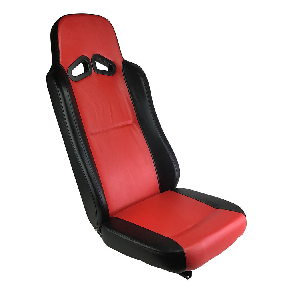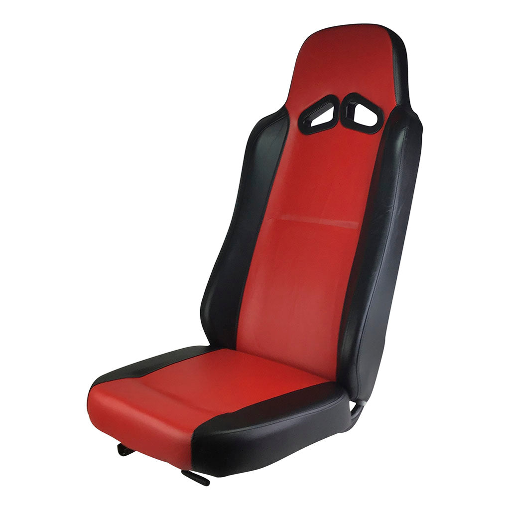 This is the new TrailMaster high-back seat used on several of their new go-karts. The seats are either red or blue with black trim. This listing is for the passenger's side RED seat.