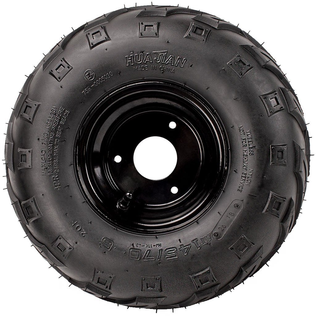 Wheel assembly for Tao Tao atvs. Please use detailed measurements and pictures to help you get the correct rim for your machine.